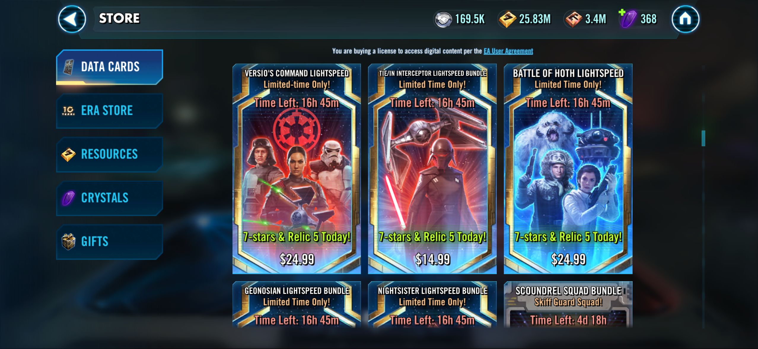 I have been trying to purchase the smugglers light speed bundle $19.99 on the web store and I was given an error message and the offer disappeared the site when I was forced to refresh the page and I have not received the bundle in my inbox but I also have not been charged in attempts to purchase the bundle