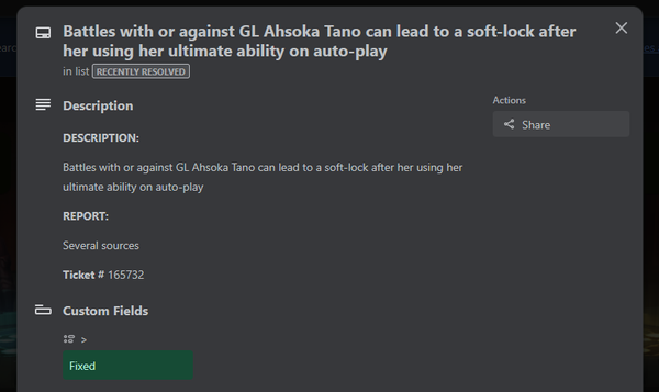 This has cost me TB and TW and GAC and Conquest battles! I am afraid to ever use her ult or go into a battle against her because it is guaranteed to soft lock my game 100% of the time it gets used. Every time I see an update and someone from CG has marked it as fixed I try using it again, only for me to lose whatever battle I was winning thanks to this bug that is NOT fixed!