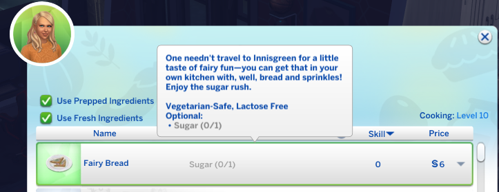 [AA] Fairy Bread Wrong Skill Level to Craft