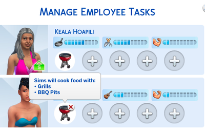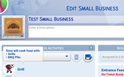Getaway Activity states sims should use BBQ PitsSims are ignoring the BBQ Pits[BH] The same issue happens when it's a customer or employee task for Small Businesses, which also explicitly states sims should cook food with BBQ Pits.