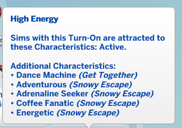 When editing Sims in Sims 4, the main trait from the new pack, Competitive, has no bearing on sims attraction or compatibility via the Characteristics submenus. While some other traits also have never appeared within this system (e.g., the Grouch trait from the holiday event), this is the first time EP traits have been excluded, so I assume it is a bug. I have completely uninstalled all mods and verified the trait still does not appear to influence any of the Characteristics. I've attached screenshots of Characteristics where Competitive makes sense to show it is not present, but have verified it is not under any of the other traits as well.