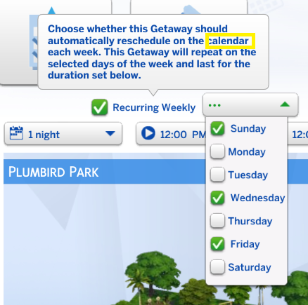 The bug: Checking the Recurring Weekly box doesn't do anything, the getaways do not recur.