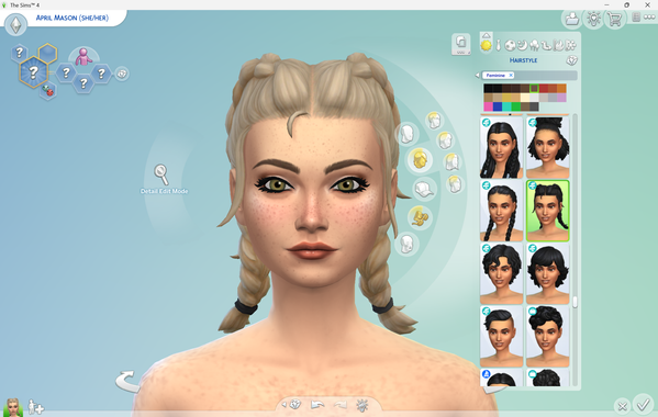 I was browsing through the hairstyles for Adventure Awaits when I noticed that one of the hairstyles had the wrong hair colour mesh applied to it for a particular hair colour. It only seems to be an issue with this hair colour (light brown), where it incorrectly shows the hair as bleached blonde instead.