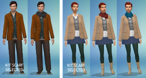 The new scarf is different from the exisiting basegame scarfs. The previous scarves allowed way more outfits. They can be used on the new outfits while the scarf that came with the kit can't.