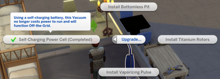 Vacuums (at least, The Dusty Chaperone Upright Vacuum by Suckup Industries) with the Self-Charging Power Cell upgrade (which is supposed to allow the vacuum to function off the grid) don't work off t...