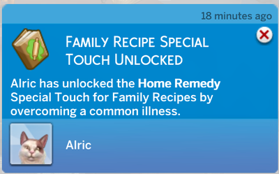 I'm sorry if this is wrong to say but I hope they don't fix this family recipe bug. I find it hilarious that pets can unlock them, plus I don't think it does anything really except for the notification. It's just like when pets call you and congratulate you on things even though they don't have a mobile phone