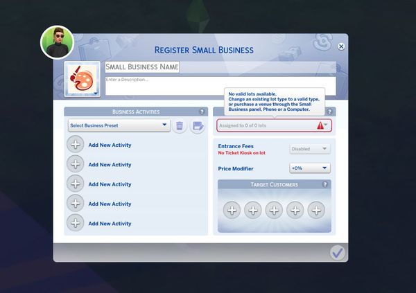 Trying to setup an old lot to be a residential small business and cannot open as it says there is no valid lot and that I should purchase a venue. Did I set this up wrong or am I missing something? Anyone else have any issues with setting up their residential lots as small businesses?