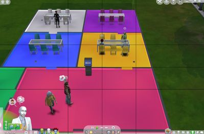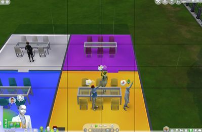 Area & Door lock settingsOrder [sit down in the green room (Buttler only room)]. Sim break the door lock.Order [sit down in the blue room (blue sim & Buttler only room. Residential area.)]. Sims break the door lock.Order [sit down in the white room (white sim & Buttler only room. Public area.)]. Sim break the door lock.