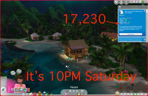 When a vacation lasts until Monday morning, households are charged both their home bills and vacation rental fees simultaneously. This occurs every time Sims are still on vacation at Monday morning. The issue only happens with vacation rentals, not when staying on public lots.