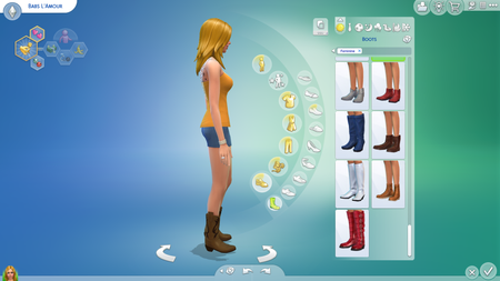 These boots from the base game shrink the size of the Sim's feet when the Sim wears them. Normal Size Feet with boots on