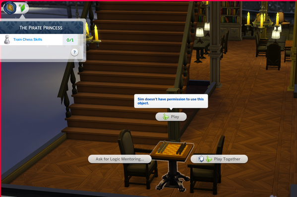 When trying to use the chess tables (any style of chess table) my sim "does not have permission to use the chess table".