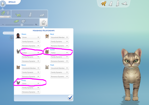 I was recently playing with the Lynx household, and Doc (an elder male cat) got pregnant. He mated on his own (which is another bug I am reporting right after this one). He did give birth and there is an assigned father. He also has fathered previous litters to female cat mothers.