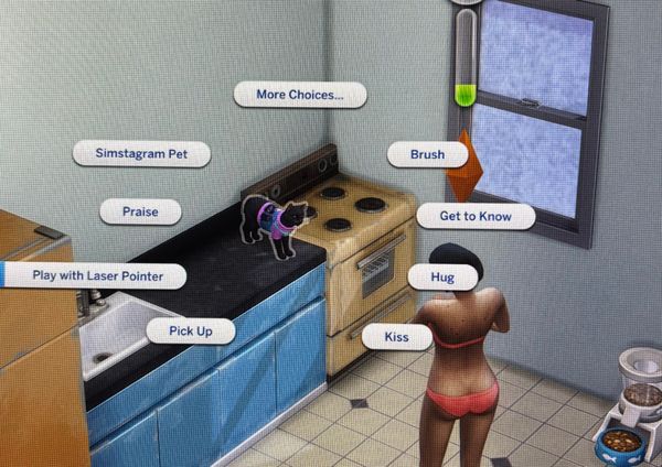 It usually shows up once the cat is on the counter, but unfortunately it wasn’t showing up. And when it actually does, the cat isn’t on the counter or the sim will say it can’t do the action. I recently disabled all my mods and cc to see if that was also an issue but it seems to not be. (Hence why my sim is in her undies lol!)  honestly anything about lecturing cats doesn’t show. My cat is a nuance and I can’t train them not too. Only options I am given is yell at or scold and I don’t wanna do that as they don’t really work when it comes to teaching cats.