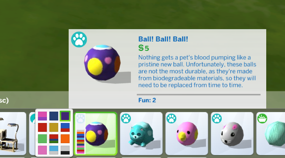 rozza_simsSeasoned Rookie15 hours agoStatus: New[CD] Pet Ball Missing Swatch in Design Toolthis pet ball has 12x swatches when you look at it in buy mode. However if you use the design tool on it, only 11 swatches show. It is the very first pink/ purple one that doesn't appear for the design tool.