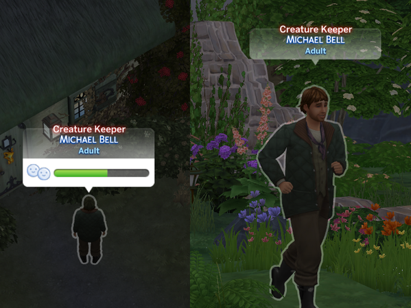When playing in Henford on Bagley, I noticed that every NPC that comes with the pack (The Grocer, the Mayor, The Garden Stall Owner, The Pub Keeper, and the Creature Keeper) were doubled. Two sims with the job title above their names were appearing around the world. Both sims offered the errands, meaning my sim could complete two rounds of every errand from every NPC. Some of the duplicates were copies of the original NPCs, for example, the mayor, Lavina Chropa, had two versions of Lavina, both listed as Mayor, and both offering the same errands and rewards. Other NPCs had randomized townie versions and the original townies in Cottage Living, for example, the grocer sims were the original Kim Goldbloom, and a randomized townie just with the job title and offering errands. No complication arose from this, it honestly just allowed my sim to do more of the errands, but it does break the immersion a little when every NPC has a twin or is a completely different sim half the time.