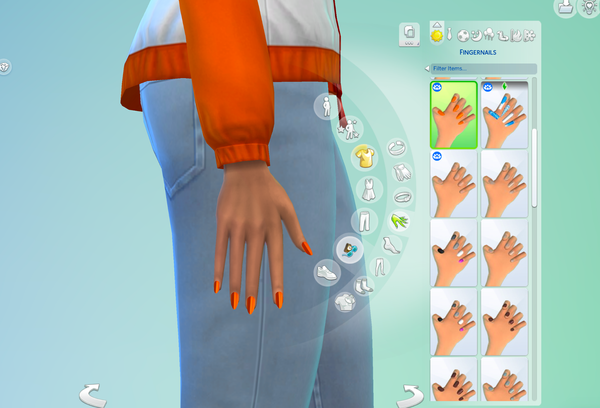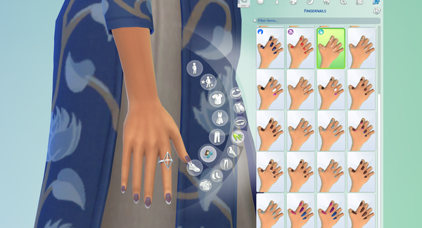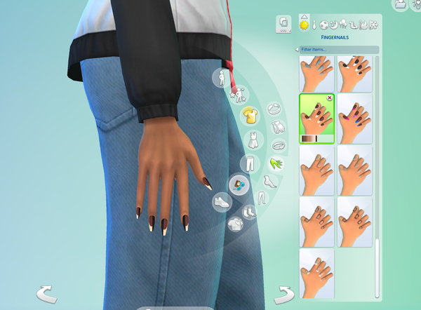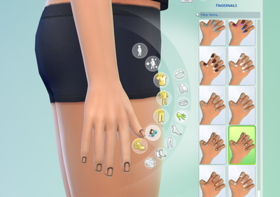• The Lovestruck nails are still bugged. Here's an image of my Sim's nails with her full body outfit on: