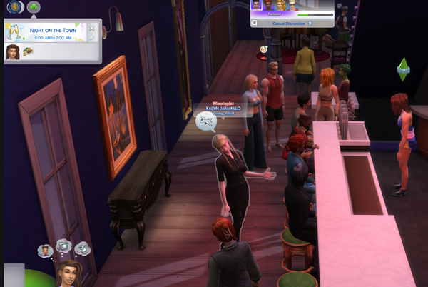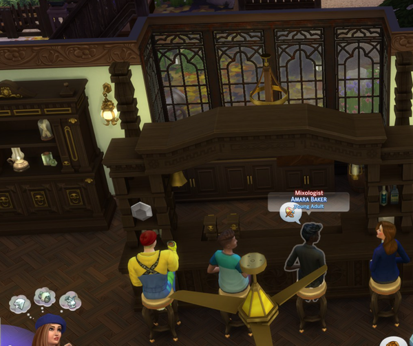 3. Feb 19 Night on the Town at Blue Velvet - bartender not working.  Bartender chats and flirts like they are there to partayyyy.  Sims can't complete the event by making their own drinks.  Can't get the UI for the bartender to make a drink or serve food.  Rough NotT.  At least the bar wasn't empty.
