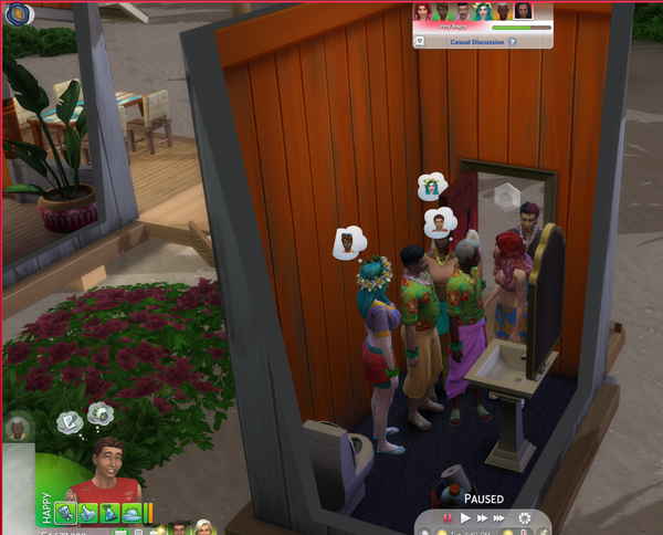 2.  Feb 22 - Group goes to Sulani bar - empty, no bartender.  When NPC/not current sims finally show up they all run to crowd into the single bathroom and stay there.  Bartender shows up after many sim hours.