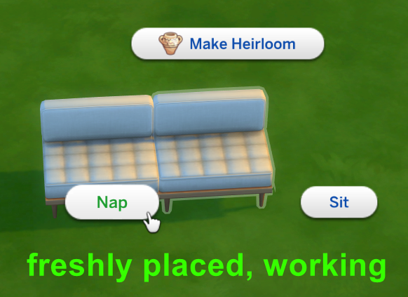 - Click on the sectional sofa to confirm that you the option to Nap is no longer available, as the game fails to detect any existing sectional sofas as connected.