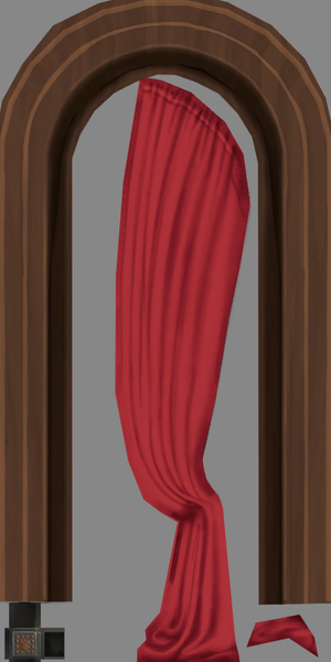 I'm assuming that the curtain was designed to have a wooden frame around it, but the actual mesh in game does not have it and now the curtain is just floating away from the wall.