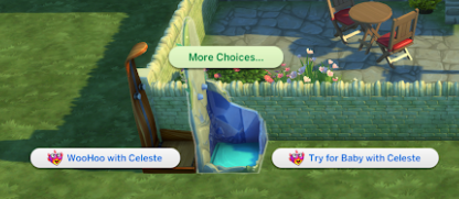 WHAT HAPPENS: Click on Shower > Woohoo with [Sim] or Try for Baby with [Sim]