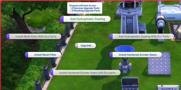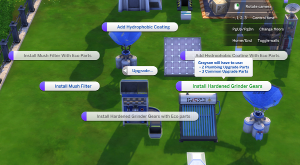 When you hoover over the eco-upgrade options, it doesn't list how many eco parts are needed. It only tells the player that the player doesn't have enough parts. It should show 5 eco-upgrade parts are required like the other objects.