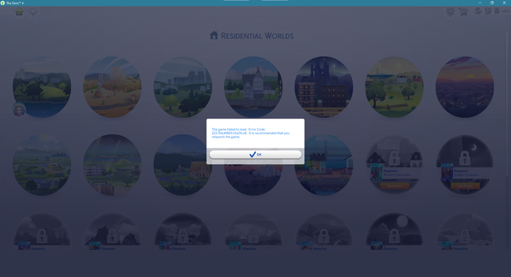 When I try to play my sim on the lot, the lot does not load and I receive error message '123:35e4f805:2671b6ce'