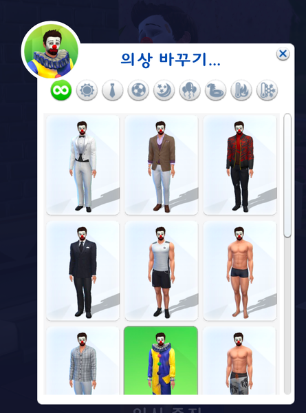 The face painting still appears on all outfit thumbnails in the Change Outfit