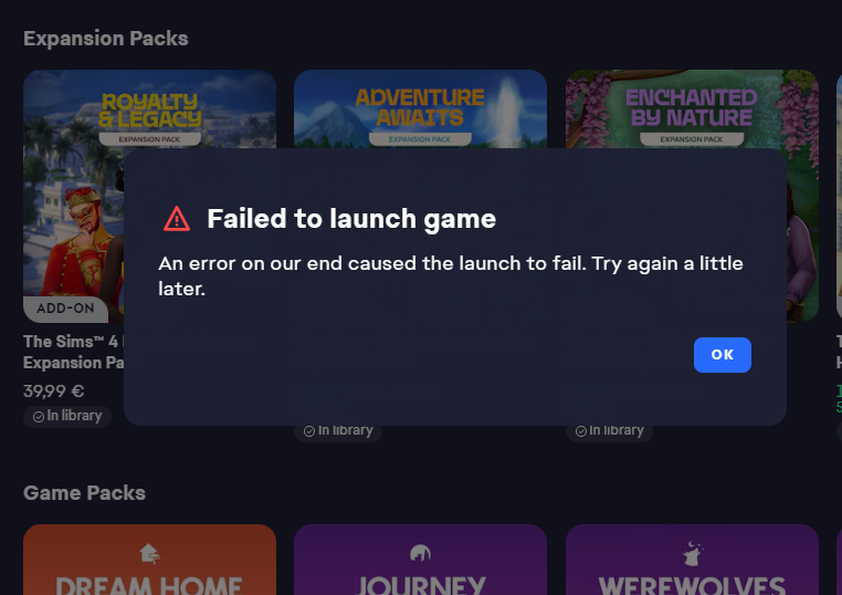 failed to launch game