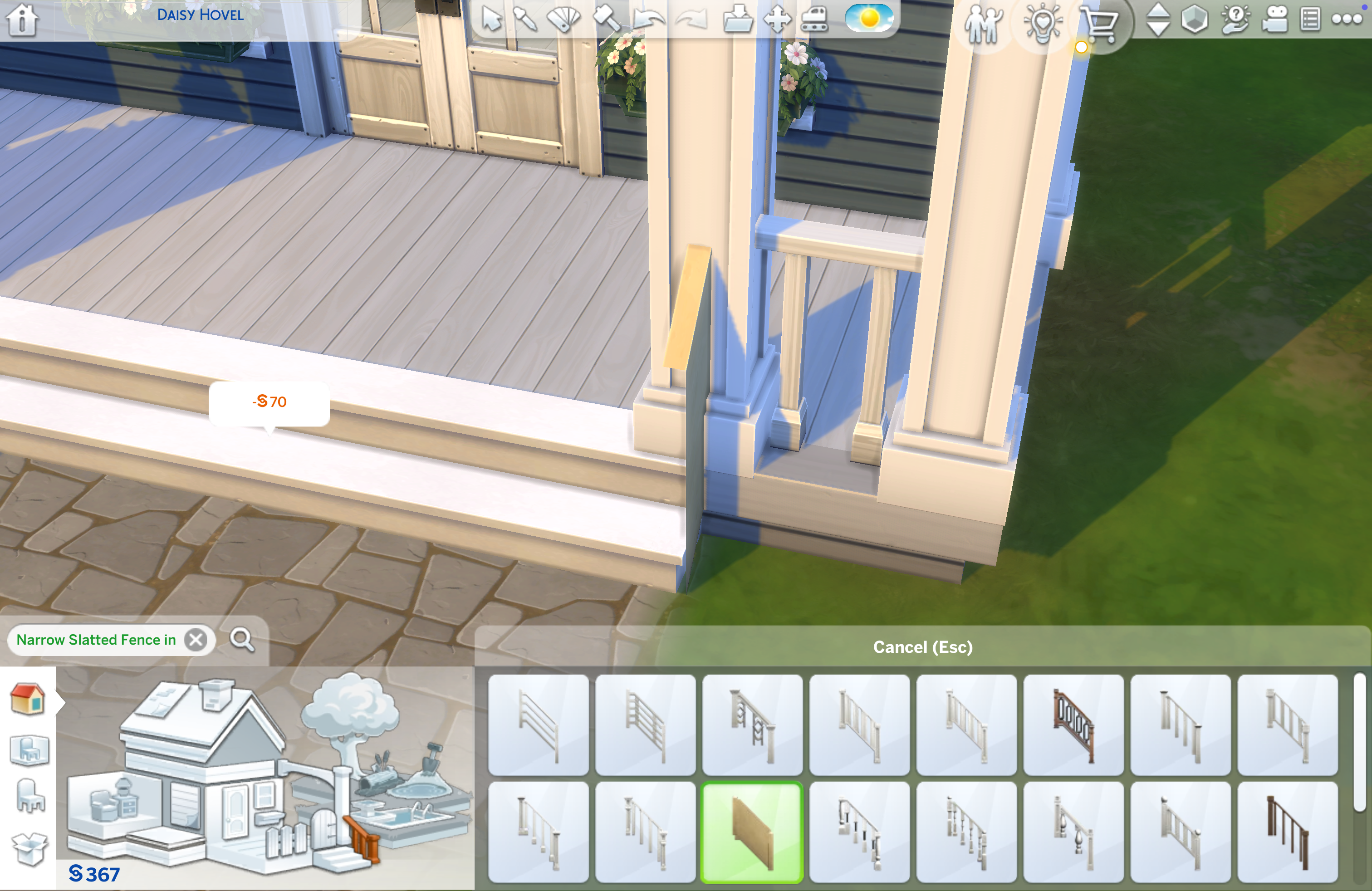 I don't remember when I first had the bug happen, but I've noticed it a lot since last month (May). Basically, the game has been refusing to load the ends of the stair railings on short stairs. I made sure to even test it on the stair railings on the inside of the house on the big staircase and the bug doesn't happen. I know it's only the short ones because I play on a lot of houses with short stairs in the front for the porch with the same issue. I even checked it with a different stair case, but I can see through the middle part