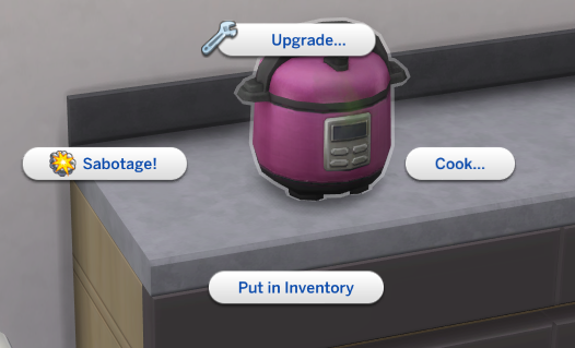 And a third bug (reported elsewhere and I've upvoted) is that this is my 2nd rice cooker, as the 1st disappeared when I switched households and back with it in my main sim's personal inventory