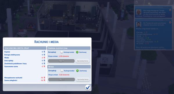 I save and leave game day before monday in game... and i have VERY LOW bills