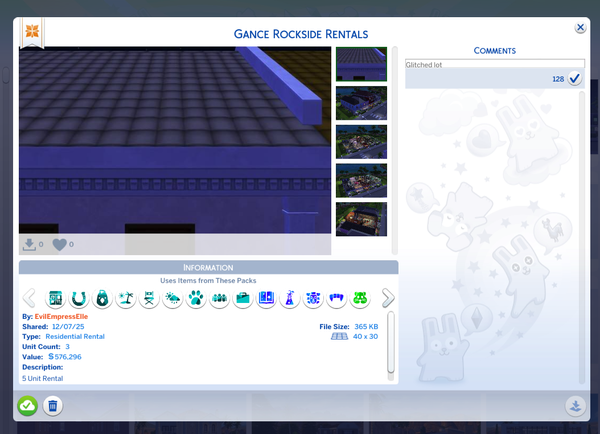 I created a 5 unit rental building, everything has been great, working fine. Couple months ago I uploaded the build to the gallery and seem to have had problems ever since.