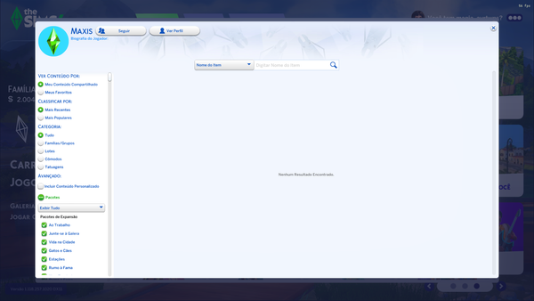 I started having this problem today. I noticed it when I went to look for a Sim on Maxis' official account in the gallery and it showed that there were no results, as if the account had no shared items. I checked other accounts and this didn't happen on all of them. I've already removed my mods and repaired my game, but I'm still having the same problem.