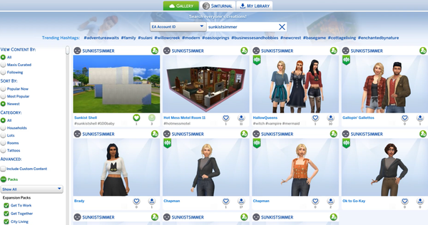 A few gallery pages are not loading, some are saying they are empty when they do infact have builds sims etc available to download but they are only accessible if you search up with the actual gallery id not just by clicking on them for example maxis gallery page i can only access if i search not just by clicking on the profile in my friends list