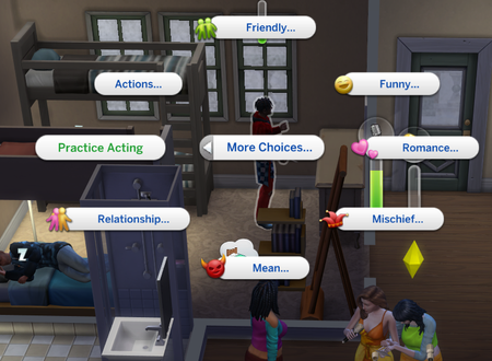 When clicking on a Sim, the "Practice Acting" option appears but it's missing the skill icon.