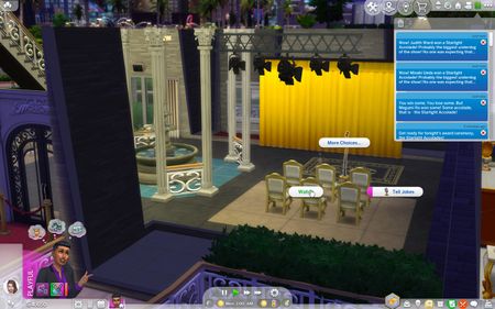 The Starlight Accolades Ceremony seems to be just... weird. I replaced the venue with one from The Gallery and started sending my Sim there to test that everything was working. Whenever I left her to herself, she went off to "watch" the microphone. The bouncer door did not deter her from entering the ceremony space.