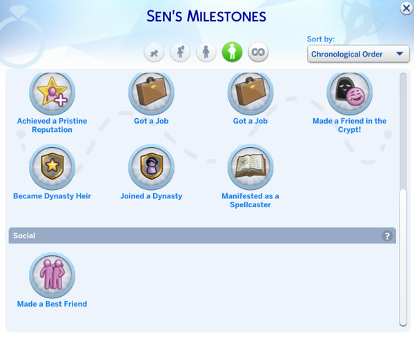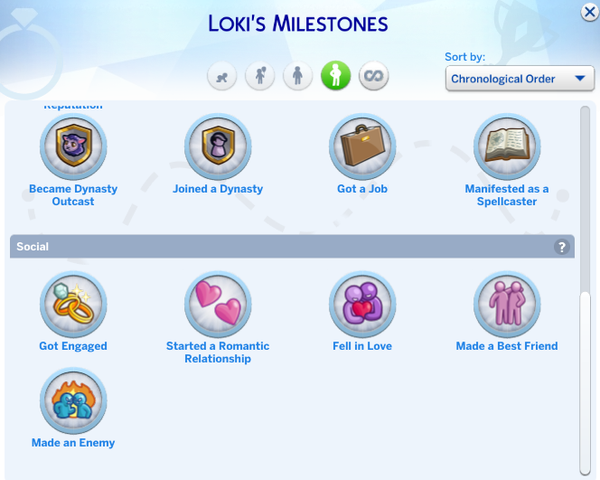 recently I had two sets of sims that got married. When they were engaged the greyed-out milestone for "get married" would show up for both men and women, however, when they actually got married, only the women would have the milestone for marriage, and the men wouldn't even have the greyed-out version. This remains the case with mods disabled as well.