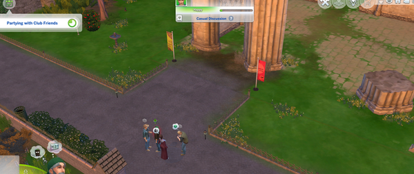 The activity as seen in the upper left corner is "partying with club friends". I suppose there should be a DJ and a bartender at the Ruins but only the attendees appear.