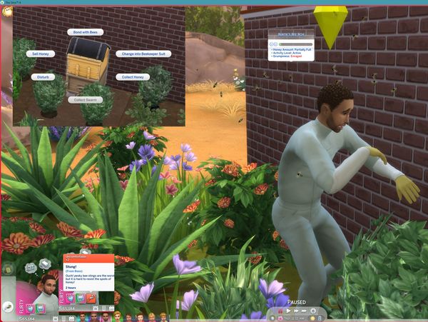 If I click on "Put on beekeeping suit" on the beehive, my Sim puts on the suit, but the hat is missing, and she still gets stung by bees even though she's "wearing the suit." There's also no longer a button for "unwrap," only "put on," even though she's wearing it. then I have to manually change the outfit. But the suit is no longer useful anyway.