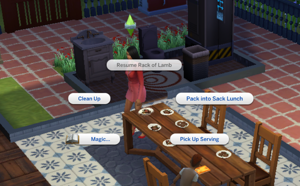When creating a group meal using Prepped ingredients with a Sim who has the "Batch Cook" trait from completing the "Appliance Wiz" aspiration, the additional group meal that's added to their inventory will not have a "Grab a Serving" option on it, instead having a "Resume [meal name]" that does nothing if placed in the world.