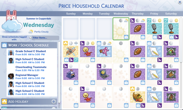 Expected result: High School Years events should automatically populate the calendar in new saves when teens exist. This appears to be a global calendar generation bug, not save-specific. This issue affects the High Shool Years Pack.
