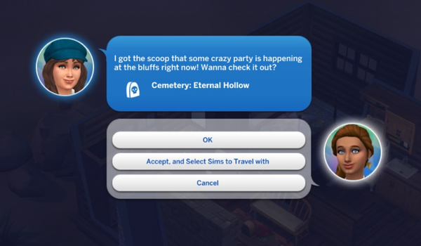 I do get what you're saying and it's alright to except this as like a "surprise invite" from an NPC. But there is a standard version for this dance party invite to a cemetery and the other "only" versions still need correction. It's not game breaking but still annoying if the game takes you to the wrong lot, which you maybe not prepared enough to host an enjoyable dance party.