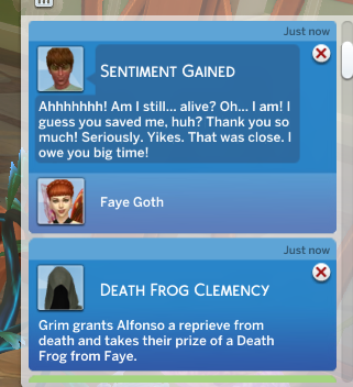 Even when there is no death frog in sims inventory or when a sim only has a death flower. It should show a different message with death flower and it shouldn't say there's a death frog when there isn't. I think this bug came with Life & Death.