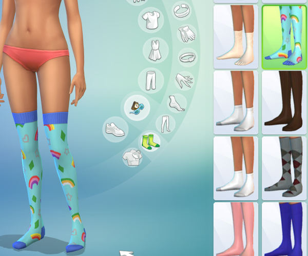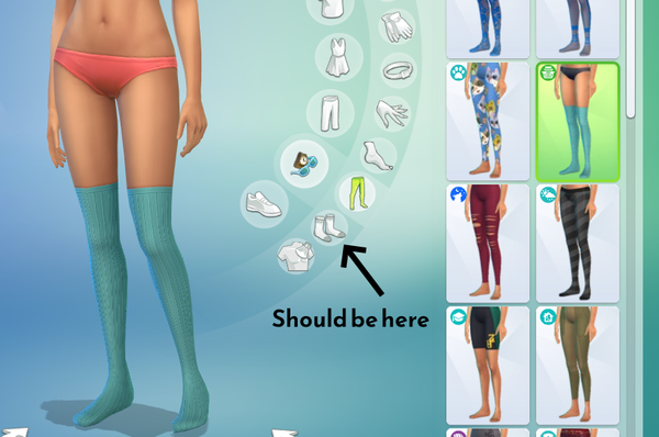 Laundry Day Stuff has a pair of stockings (yfAcc_TightsSP13Stockings) that are categorized under "Tights", even though plenty of other visually similar assets are categorized as "Socks".
