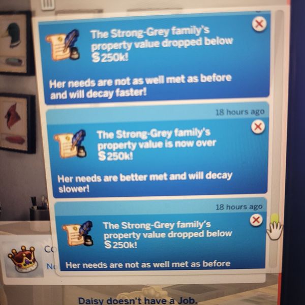I keep getting 'Furious but Fancy' moodlets, when nothing is broken (I even hired a handyperson to come in to fix things, to be sure I wasn't missing something). It's either something in the dining room or the home gym that's triggering it. They keep getting the animations for dirty/broken objects in the home gym, but the kids don't go in there and still get the moodlet.