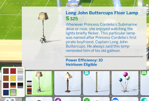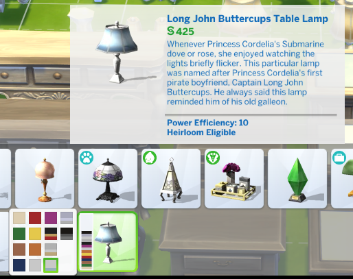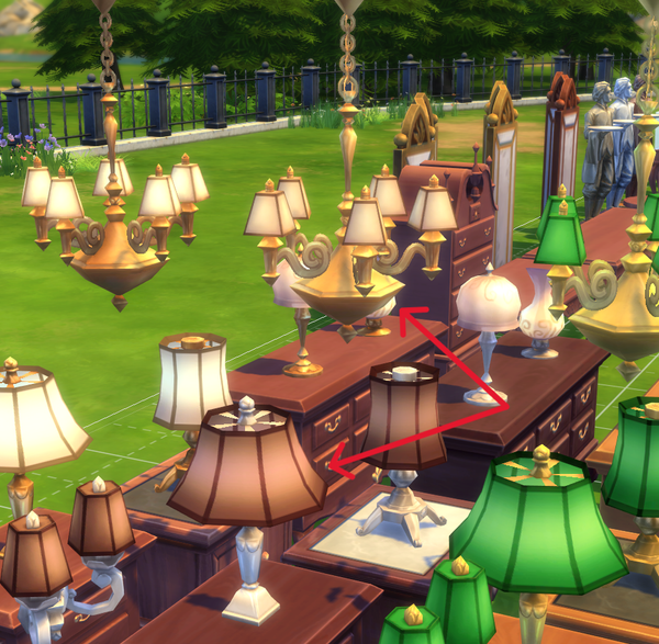 This entire light set has swatch inconsistencies. Several lamps are missing many of the colorful swatches found on the matching sofa set, and the lights also don’t match each other in available colors. A couple of the items also have a mesh issue (solid top). Full details and screenshots are included above.