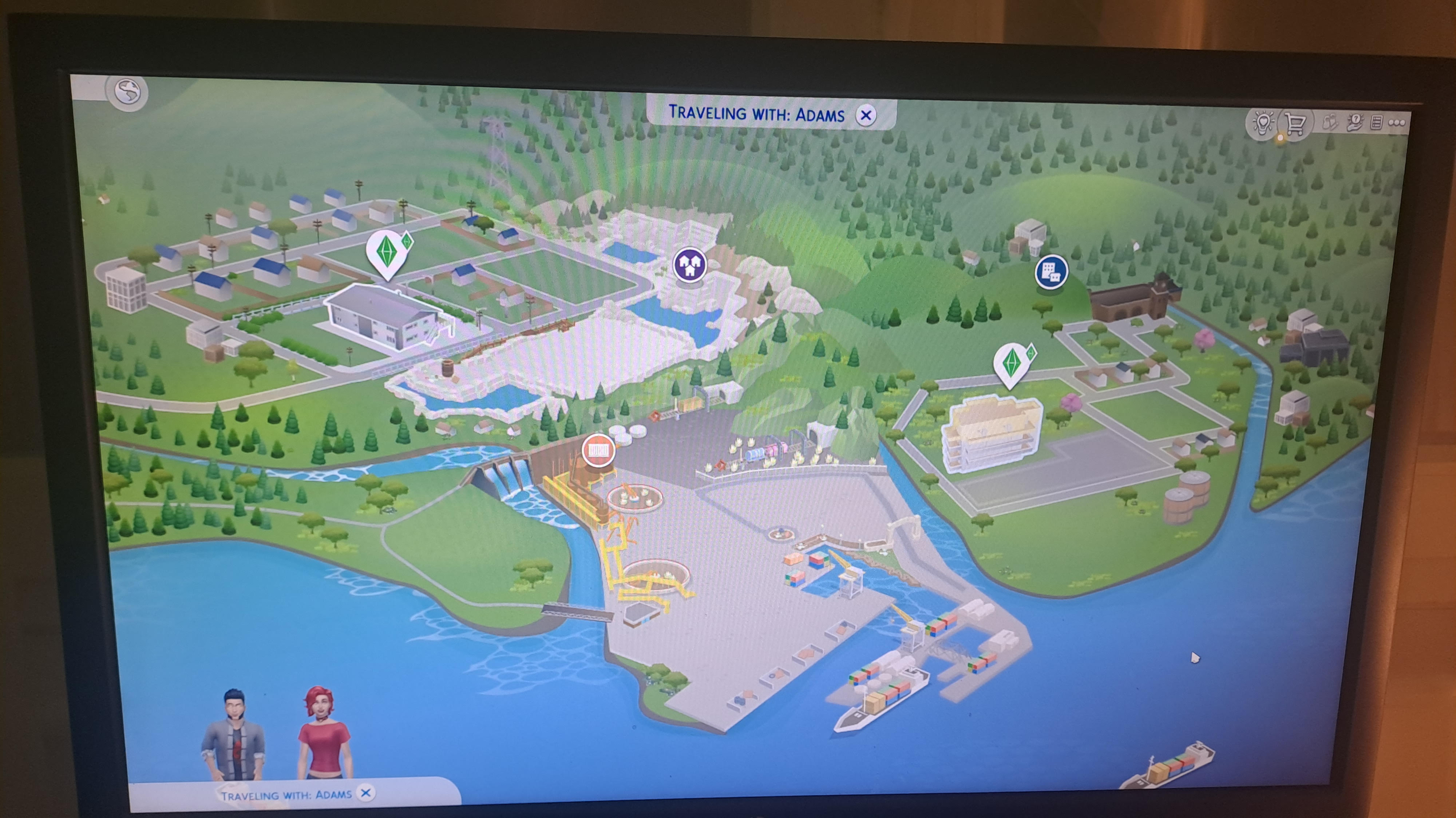When attempting to open Evergreen Harbour in the Manage Worlds screen in The Sims 4: Eco Lifestyle, several map elements are missing. The residential lots do not appear on the map, and only community lots are visible (but cannot be used). However, it is not possible to interact with or select the community/residential lots. This issue also occurs when trying to travel to the area, as the same missing lots and navigation problems persist. I noticed this bug yesterday, and since then, it appears intermittently—sometimes the map elements show up, sometimes they don’t. However, now it’s consistently not working, and I’m unable to use it at all.