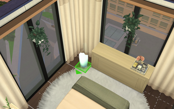 Dekai Kawaii Neko Lamp vanishes behind the Decidedly Neutral Short Curtains when placed in front and within the same grid tile. It shows correctly with a low angled camera, but glitches when the camera angle increases. I'm playing on the 701 Zenview lot on PC. No mods, fully updated game, and I own all packs.