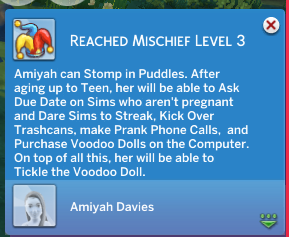 In the mischief level 3 notification, the pronoun is incorrect. It should be she and not her.  Also there are two spaces between phone calls and purchase voodoo dolls.